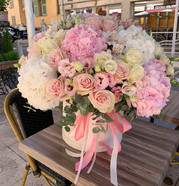 Изысканная композиция в мягких розово-белых тонах, собранная из пышных гортензий, нежных роз и утончённых эустом. Букет «Mona Lisa» словно отражает загадочную улыбку и гармонию великого произведения искусства — нежность, изящество и тонкий шарм.